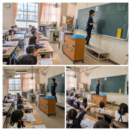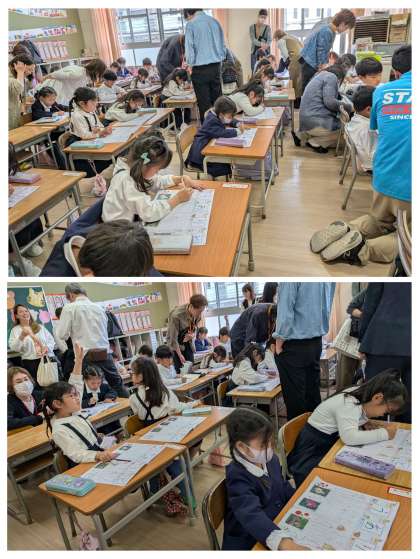 「う」の学習をしました。書き方を学習してから「う」から始まる言葉集めをしました。おうちの人にも書いている字を見てもらいました。