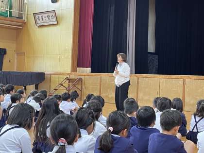 今日の児童朝会は、いじめ(いのち)について考える日でいじめといのちの大切さについて話しました。新しいクラスで友たちのことをまず知ることで仲よくなるきっかけが作れることや、気持ちを優しく伝えることから始めようと伝えました。もし、いじめがわかったり、しんどくなったりした時は周りの大人に伝えること、毎日の心の天気でも伝えられることも合わせて話しました。その後、いじめでいのちを自ら落としてしまうこともあるので、いのちについても話しました。普段から「自分の命は自分で守る」ということを伝えています。