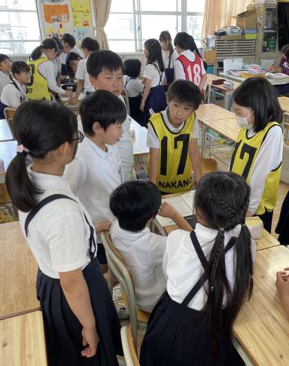5月23日(金)のベストスマイル(たてわり)遠足に向けてグループで話し合いをしました。当日のミッションに、グループでの写真撮影があるため、6年生が中心となってポーズを考えていました。各グループ、どんなポーズで写真を撮るのか…とても楽しみです!