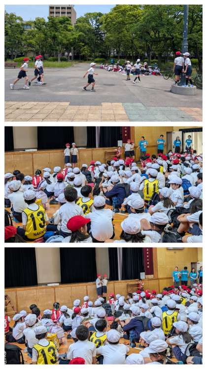 時計台をあとにして、学校へ、講堂でただいま式をしました。少し調子を崩した子もいましたが無事にどの班も帰校できてよかったです。