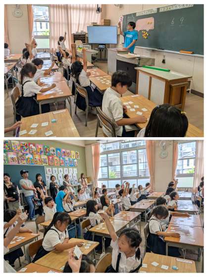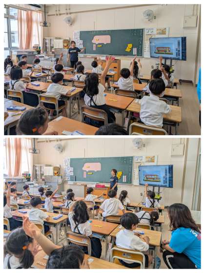 1年生は、算数でした。1大きい数1小さい数を見つけたり、たし算の式を立てたりと学習しました。