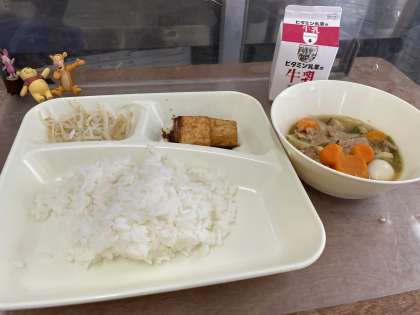 今日の給食は、八宝菜、あつあげの中華みそだれかけ、もやしの中華あえです。
