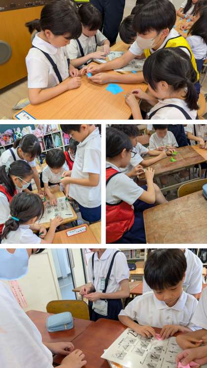 読み聞かせを聞いたあと、各班で鶴を折りました。この鶴は、6年生が修学旅行で原爆の子の像のところで慰霊祭をして奉納します。みんなの平和への思いをこめて届けてもらいます。