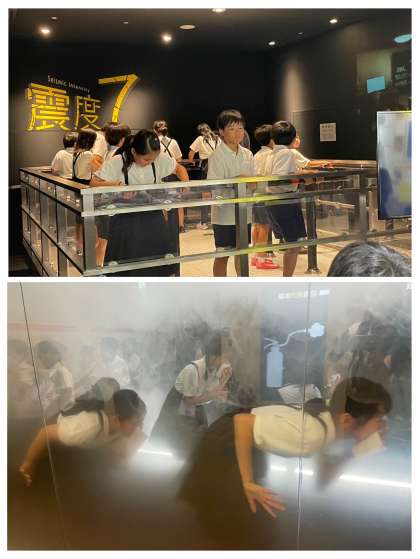 今日は、防災センターに社会見学でした。あべのタスカルに到着し、ハザードマップを確認したり、エレベーターに閉じ込められたときの対応の仕方を学んだりしています。
