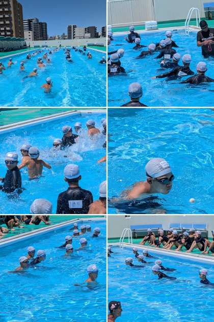 今日で6年生は小学校最後のプール学習でした。低学年から親しんだ水慣れ体操や、ピン玉を吹いてプールの横幅の距離を運びました。