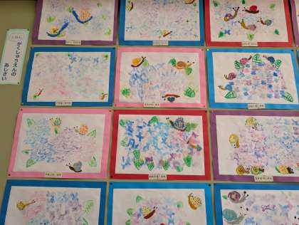 ぼかしの技法を使ってアジサイを描きました。