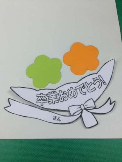 一枚の花びらに六年生に向けてのお礼やお祝いのメッセージを書きます。たてわり班の仲間たちの花びらたちが集まると、心のこもった花束が出来上がるわけです。画像はもちろん未完成のもの。六年生のみなさん、土曜日を楽しみにしていてね。