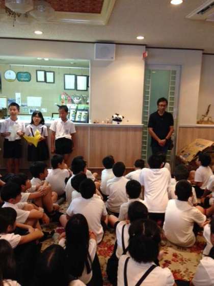 ロビーで開舎式が開かれました。三日間お世話になるなかやさんにしっかりあいさつができました。