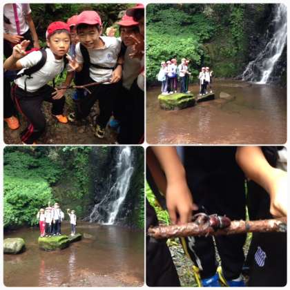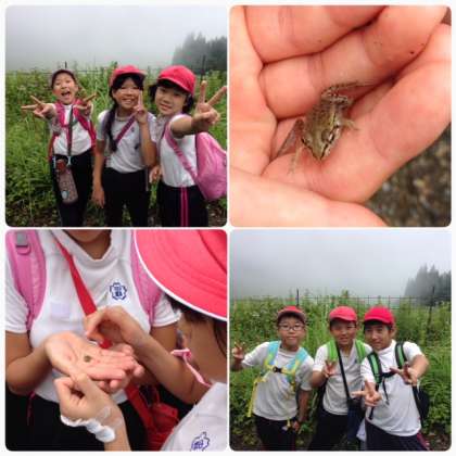 昇竜の滝に別れを告げ、来た道を下っていきます。坂が急なので慎重に慎重に。クワガタやカエル(色々な色がいましたよ)を発見し、大興奮。行く時にはなかった霧にも自然の素晴らしさを感じます。