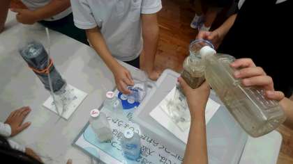最後に質問タイムで、事前に学習の中ででてきた疑問を聞くなど、水がどのようにして、飲める水になるのかを楽しく知ることができました。