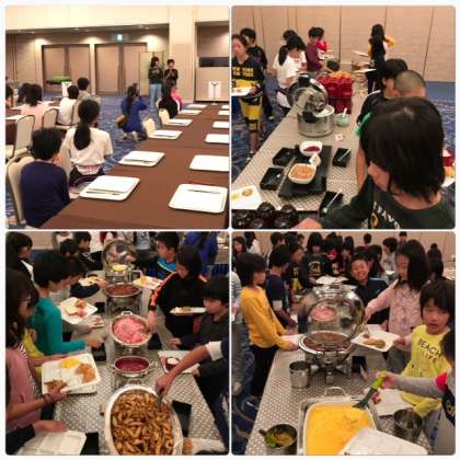 6時35分からの朝食。お家では、何時ごろに朝食を食べていますか?朝食もバイキングです。ポテト、スクランブルエッグがおいしいです。昨日の夕食同様、食欲旺盛な六年生。今日もいい一日になりそうだ。朝ご飯ってすばらしい〜〜。