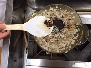 子どもたちは、社会では、お米の消費量が減ってきていることや米作りをされている農家の人たちの大変さを学習してきました。また、総合では、実際に稲を育てて先日、脱穀しました。そんなお米とは関わりが深い中、炊飯器ではなく、鍋でお米を炊くことや、みそ汁では、煮干しからだしをとって作る実習をしました。