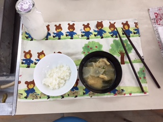 お米が炊けたときにガラス鍋の底のお米が少し焦げたのですが、みそ汁とご飯は、本当においしそうに食べていました。