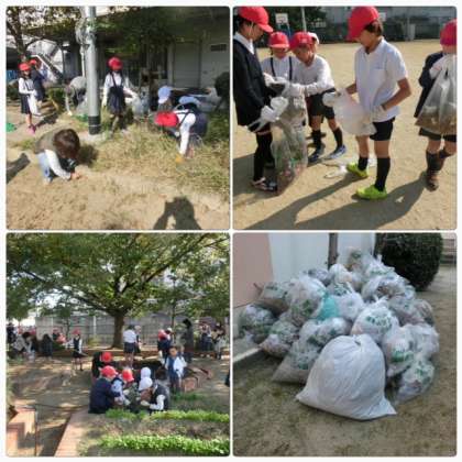 今日は、学校公開「中野クリーン作戦」でした。作戦は成功しましたね。保護者の皆様も子どもたちと一緒に作戦に参加してくださりありがとうございました。集団登校班で行った「中野クリーン作戦」、違う学年、そしてお父さん、お母さん、地域の方々と一緒に町の清掃活動を行えたことが素晴らしいです。公園などは、地域の方に清掃道具まで貸していただけましたね。ありがとうございます。清掃活動を終えてからの「まずは、ごみを出さないことが大切」という校長先生、教頭先生のお話もしっかり覚えておきましょう。