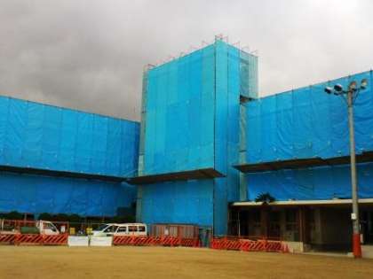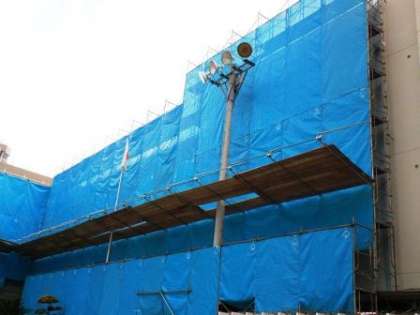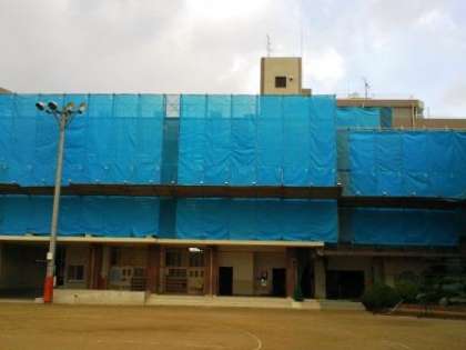 現在行っている校舎の外壁塗装工事ですが、無事に作業用の足場も組み上がり、塗装作業が始まっています。
