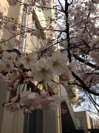 いつも、学習園の桜ばかりなので、今日は西館裏の桜を紹介します。きれいですね。まだ満開とまではいってませんが、春到来です。入学式の日まで残っていますように・・・。