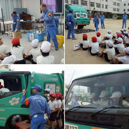 先週の火曜日、パッカー車が中野小学校に来てくれました!