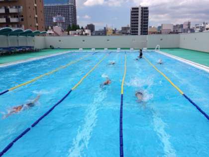 夏休み初日、いい天気になりました。たくさんの人たちがプール開放に来ました。一番たくさん来たのは1年生で、47人です。