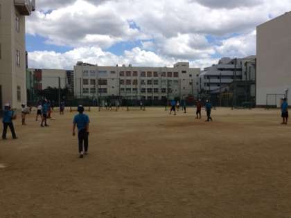 ソフトボールクラブとサッカークラブの夏休み練習が始まりました。暑い中、部員のみんなは、がんばっています。交流大会、1勝目指してがんばれ!!