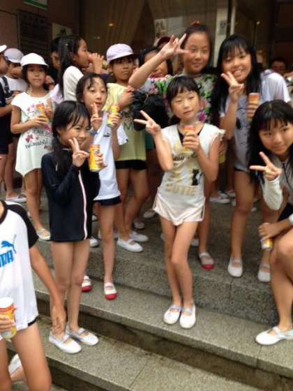 なかやさんの前でオレンジジュースをいただきました。なかやさん、ありがとうございます。