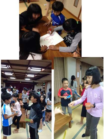 切り替えの早い5年生、なかやさんの食堂での活動班対抗ゲーム大会で大盛り上がり! 優勝目指してがんばりました。最下位の班のみんなの罰パフォーマンスも一生懸命でほのぼのしました。