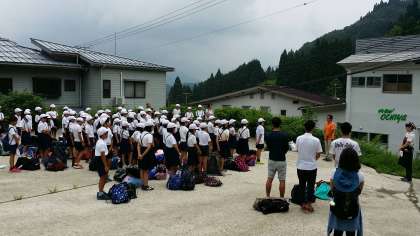 旅館なかやさんとの開舎式です。緑いっぱいのハチ北に感動です。
