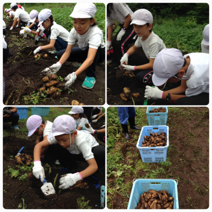 ジャガイモをたくさん収穫しました。ハートの形など、面白い形のものがたくさんありました。