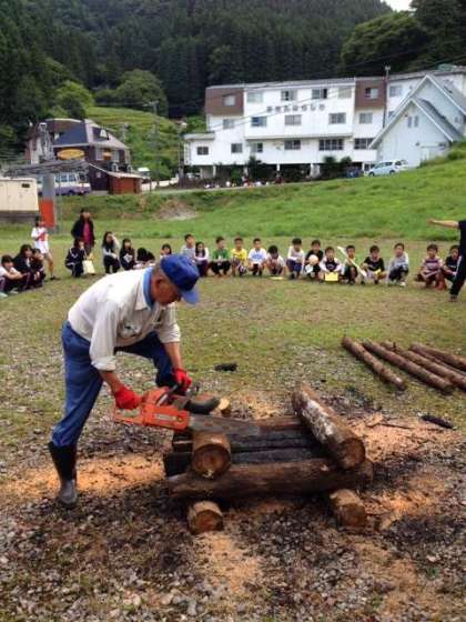 キャンプファイヤーの薪を組んでくださるなかやさんスタッフ。キャンプファイヤーの練習をするレクリエーション係。準備は着々・・・ドキドキ、ワクワク・・・