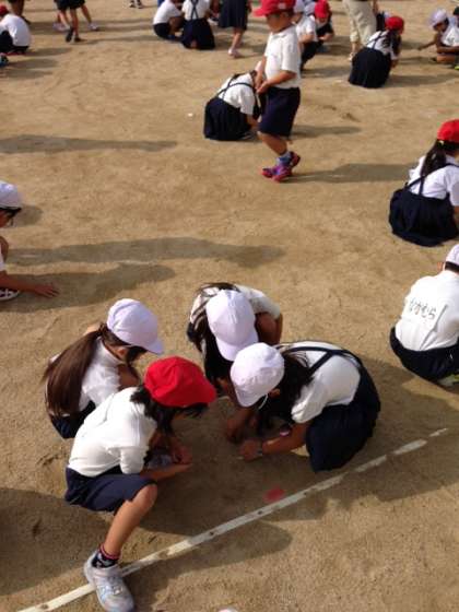 続いて、グラウンドの石ころ拾いです。安全に運動会ができるように、みんながんばりました。