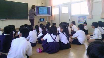 さて、会議室に目を移すと、5年生がニノ先生の英語学習をしていますよ。