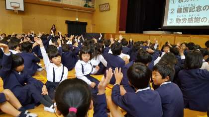 まず、1つ目は、児童集会の様子です。今日は、集会委員さんが「中野小学校のこと、世の中のことどれだけ知ってるの? 11月なんでもクイズ」をしてくれました。