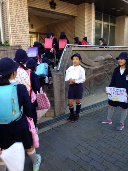 今週は、「児童会あいさつ運動」の週です。代表委員は、各曜日担当を決め、正門に立ちみんなの先頭に立ち、さわやかで元気な声で朝のあいさつをしています。ポスターも持っていますね。