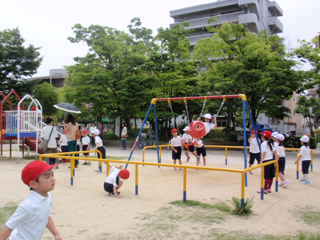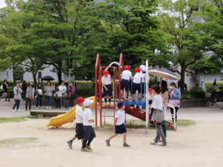 公園ではたくさんの保護者の方が見守りに来てくださいました。おうちの方と一緒に遊んでもらった子どもたちはとてもうれしそうでした。
