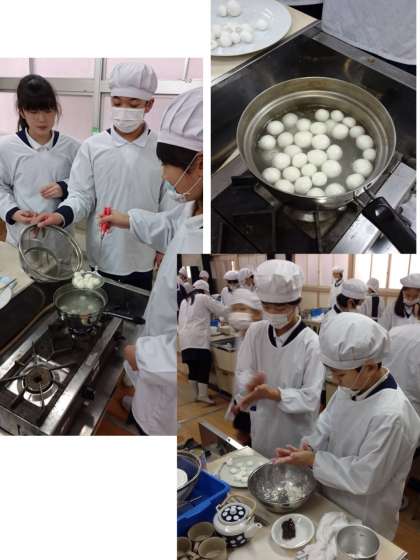 6年生が白玉だんご作りにチャレンジしました。白玉粉をだんごに・・・水加減が難しかったです。耳たぶぐらいの柔らかさてどれくらいだ・・・?