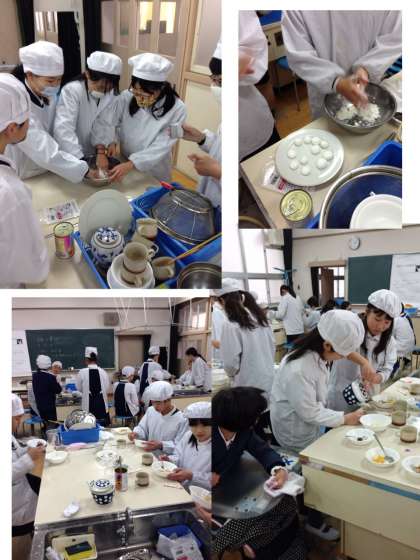 「お世話になった人へ感謝の思いをもって、和菓子作りに挑戦しよう!」というめあてで行いました。