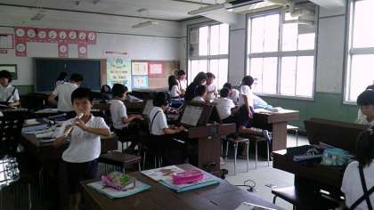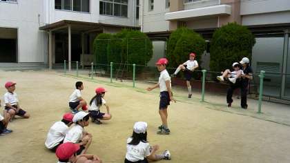 今日はくもりで、運動場にはすずしい風が吹いています。