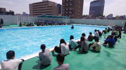 普段の水着とは違い思うように体が動かないことに初めは戸惑いましたが、服を着たままでの水中での動き方やもしもの時の対処法をしっかりと学びました。