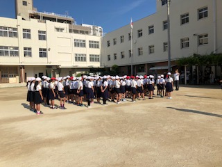 出発式では、引き締まった顔で校長先生のお話や担任の先生の話を聞くことができ、わくわくしている子や緊張している子もいました。