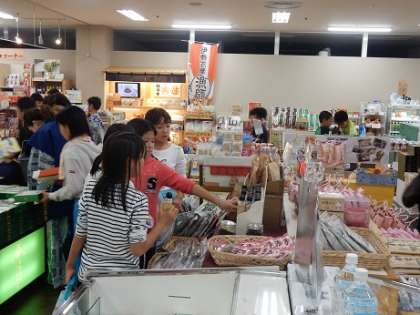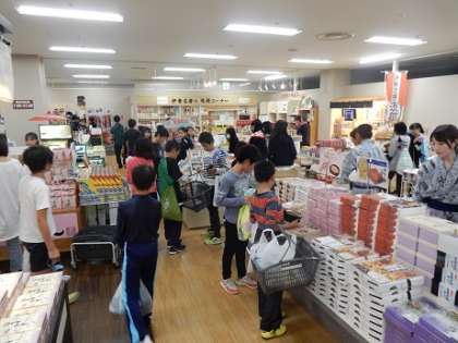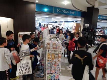 お風呂上がりにお土産コーナーに向かいました。おうちの人やおじいさん、おばあさんへのお土産を、これがいいかな… こっちがいいかも… と、あれこれ迷いながら限られたお小遣いをいかに使おうか悩む子もいます。あっさりと、「これ」とすぐに決める子もいます。楽しい買い物の一コマです。
