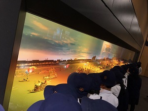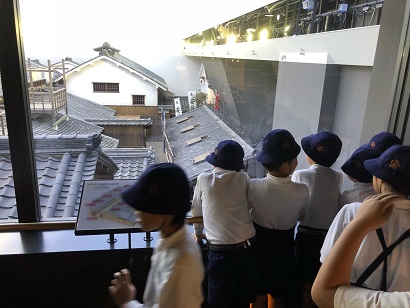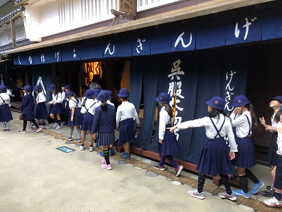 館内では、昔の街並みや商店のようす、くらしの様子などを模型やパネル、復元された建物などでリアルな形で学んできました。明治〜戦前にタイムスリップしたような不思議な感じがしました。行き返りに通った今の商店街と比べると大きな違いがあります。昔の人々の暮らしの中の工夫や知恵についても学ぶことができました。