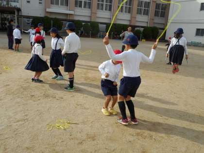11・6(火) たてわり班でなわとび朝会(1年・4年)