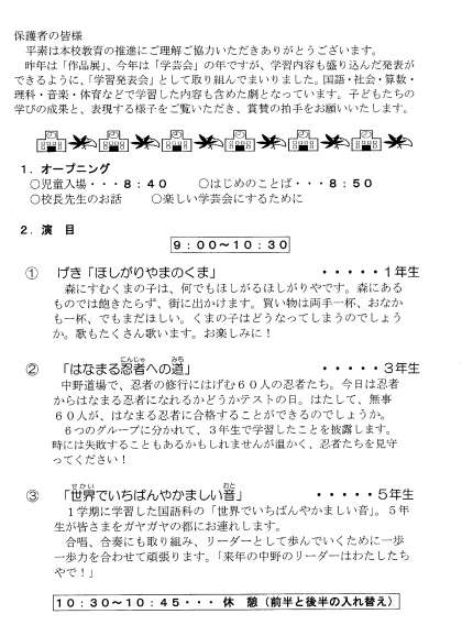 子どもたちは、自分のがんばっている姿をおうちの人やたくさんの人に見てほしいと思っています。ぜひ、ご覧ください。