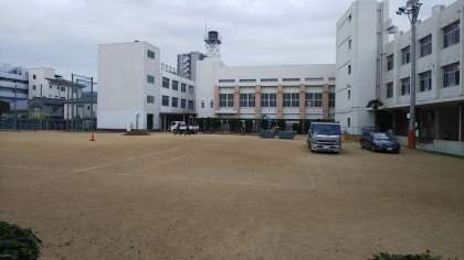 校舎の建て替えに向けて本日より運動場で仮校舎設置工事が始まりました。