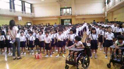 こどもたちは穏やかに講堂に集まり、始業式をしました。