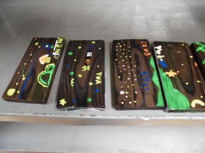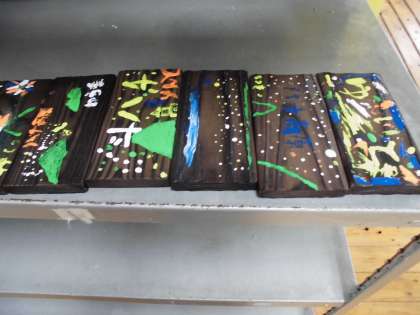 描きあがった焼き板です。ペイントが乾いてから学校に送ってもらいます。