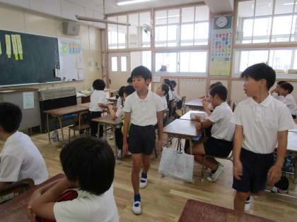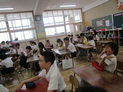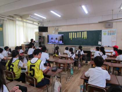 たてわりの各教室で「サマーバケーションクイズ」にたてわり班グループで問題に挑戦しました。三択クイズの三択の内容が工夫されていてとても楽しかったです。
