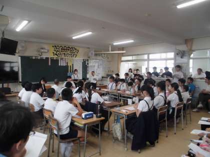 9月11日、府特活研究会・がんばる先生支援公開授業に大阪府や大阪市の先生方が約80名ほど来ていただきました。6年1組で学級活動「なかのまつりを盛り上げよう」という議題で話し合いました。話し合いの柱1は、「出し物の内容を考えよう」話し合いの柱2では「クラスでできる工夫」について活発に意見が出て、みんなが納得いくように決められた条件や提案理由をもとによりよい意見に決まりました。6年生として全校みんなが楽しめるものにしてくれると思います。頼もしいです。