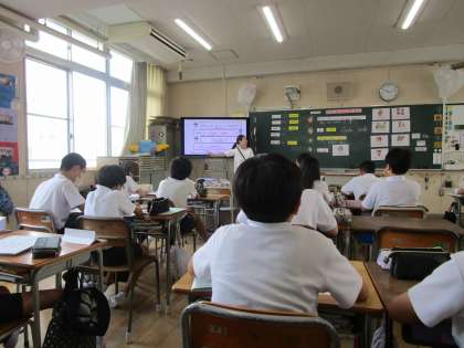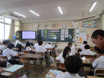 今日の外国語活動は、夏休みの思い出の感想を言おうというめあてで学習しました。今までに学習した過去形の言い方を復習して気持ちを表し方を知りました。友だちと交流して友だちの夏休みの様子が分かりました。積極的に友だちとかかわる姿が見られました。