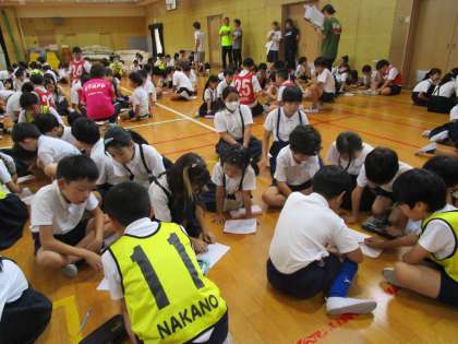 今日のたてわり集会は、10月2日のなかのまつりの回り方を班で相談しました。今年は、全部回るとコンプリート賞もあるそうです。上手に回ってたくさんのお店で楽しめるといいですね。