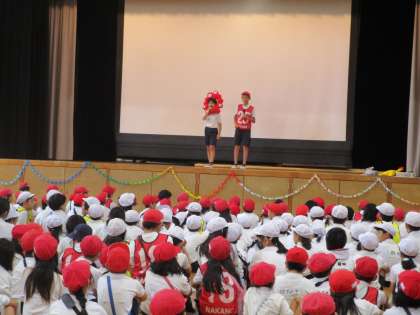 なかのまつり 公開日 2025/10/03 更新日 2025/10/03 学校行事 開会式の様子です。「テンションMAX 最高の中野万博へレッツゴー」のスローガンを確認していよいよスタートです。 いいね(0)